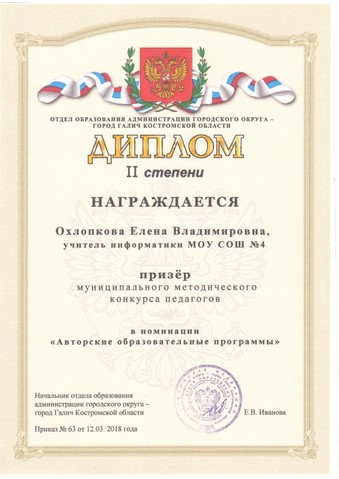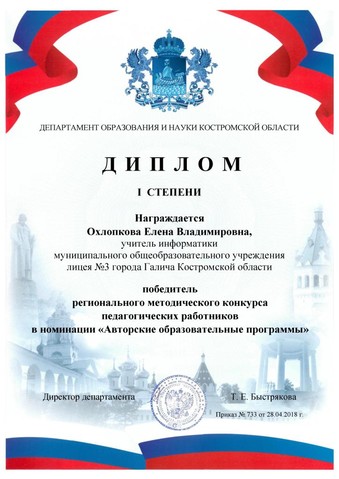 3. Дипломы призера муниципального и победителя регионального методических конкурсов в номинации "Авторские образовательные программы" (Костромская область)