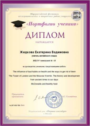 2013 7в Оксаниченко Данил «Секреты английского чаепития» - 2 место