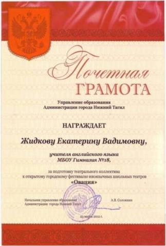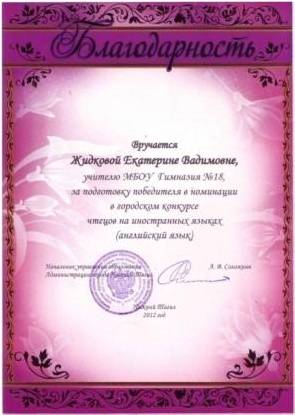 2012 - Международная олимпиада по методике преподавания английского языка «English ONLINER» - 1 место