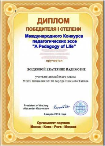 2013 - Международный конкурс педагогических эссе «Pedagogy of life» - 1 место