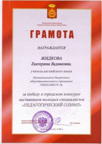 2012 - Городской конкурс наставников молодых специалистов «Педагогический Олимп» - 1 место
