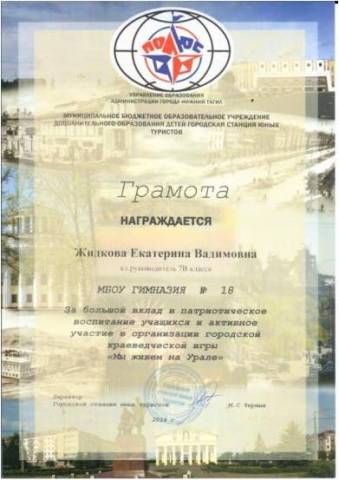2011 - Конкурс методических разработок по итогам 33 городского фестиваля юных натуралистов - 3 место