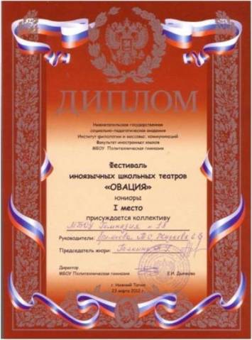 Участие в городском фестивале иноязычных школьных театров «Овация»
