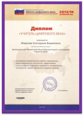 2014 - Участие в общероссийском проекте «Школа цифрового века» - диплом