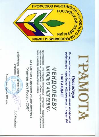 Являюсь участницей краевого конкурса «Учитель года» в номинации «Педагогический дебют» (2006 год). Принимаю активное участие во внеклассной воспитательной работе школы. В разное время разработала и провела такие внеклассные мероприятия, как «Олимпийские игры в древности и современности», «День народного единства», «5 месяцев беды, освобождение Минеральных Вод от немецко-фашистских захватчиков», «День защитника Отечества», «7 чудес России», а так же районное мероприятие «Круглый стол на тему нравственности. Герой нашего времени» и другие.