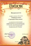 2. Региональный конкурс учителей биологии Ростовской области 2012 г. призы от издательского центра «Вентана - Граф»; 3. Выступление на городской августовской конференции "«Доступное качественное образование – приоритет модернизации системы образования г.Таганрога»" Самообразование